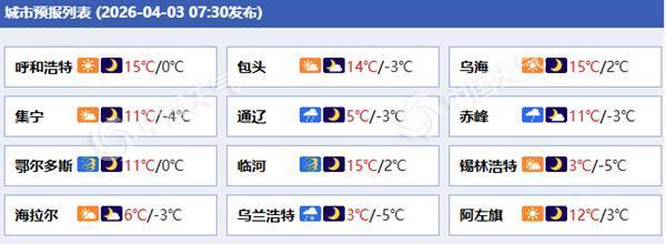 内蒙古各城市天气预报。(来源:中国天气网)